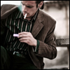 Description: Man reaching into jacket pocket for matches to light cigarette.